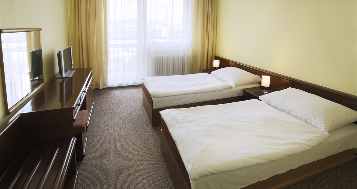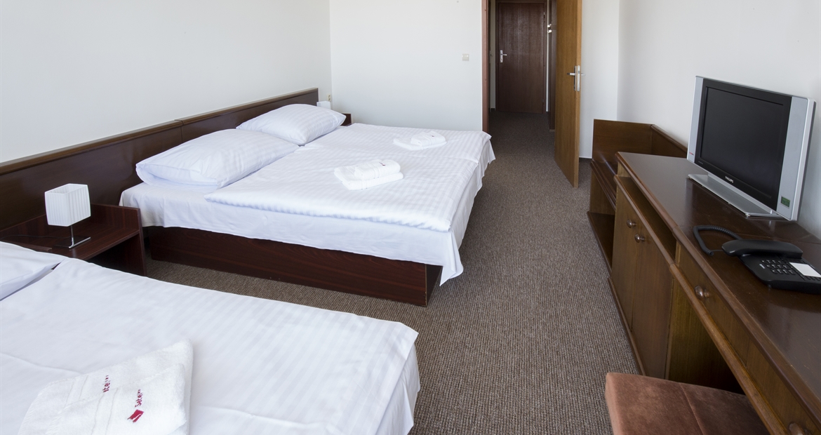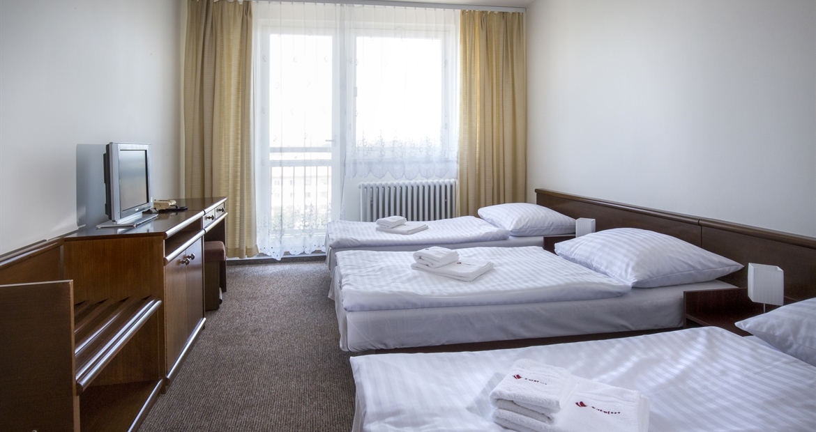 třílůžkového pokoje lze přidat jednu přistýlku. Rozloha pokoje je