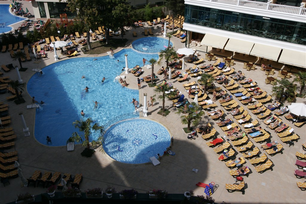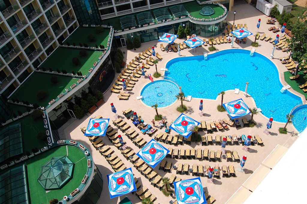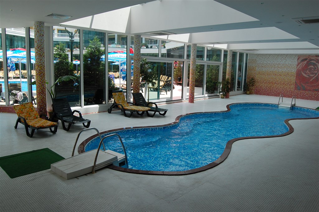 Sport a zábava: Venkovní a vnitřní bazén s lehátky a slunečníky u bazénu, animace pro dospělé, vodní gymnastika, stolní tenis, sauna, fitnes, jacuzzi, Wi-Fi v hale, lázeňské procedury, parní lázeň, turecké lázně, masáže, kulečník, elektronické hry a internetový koutek.