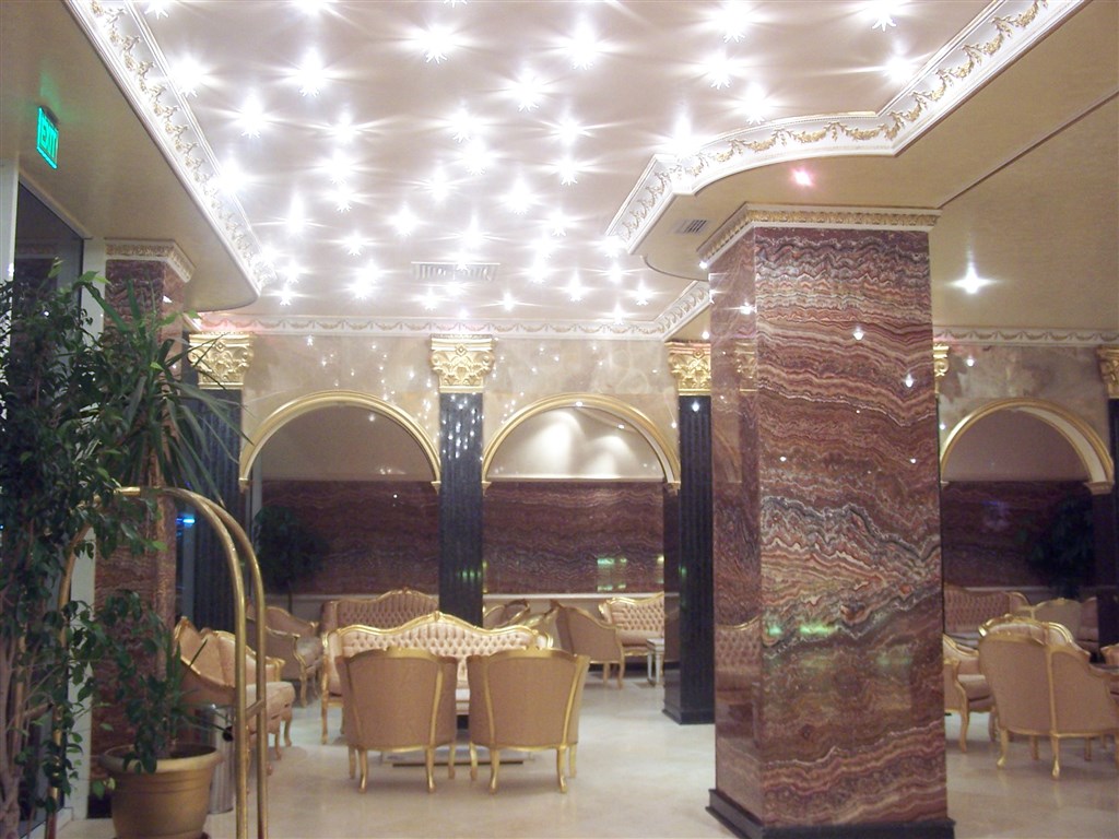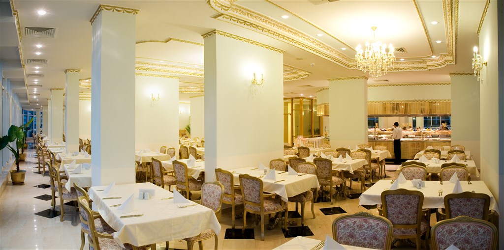 Vybavení: Pro hotelové hosty je zde vstupní hala s recepcí, výtahy, směnárna, trezor na recepci, Wi-fi připojení ve společných prostorech zdarma, hlavní restaurace, lobby bar, snack bar, konferenční místnosti, venkovní bazén s lehátky a slunečníky, dětská část bazénu, hotelový animační program, stolní tenis, fitness, vířivka, salon krásy, počítačové hry, Spa služby, půjčovna automobilů, parkoviště.