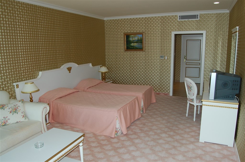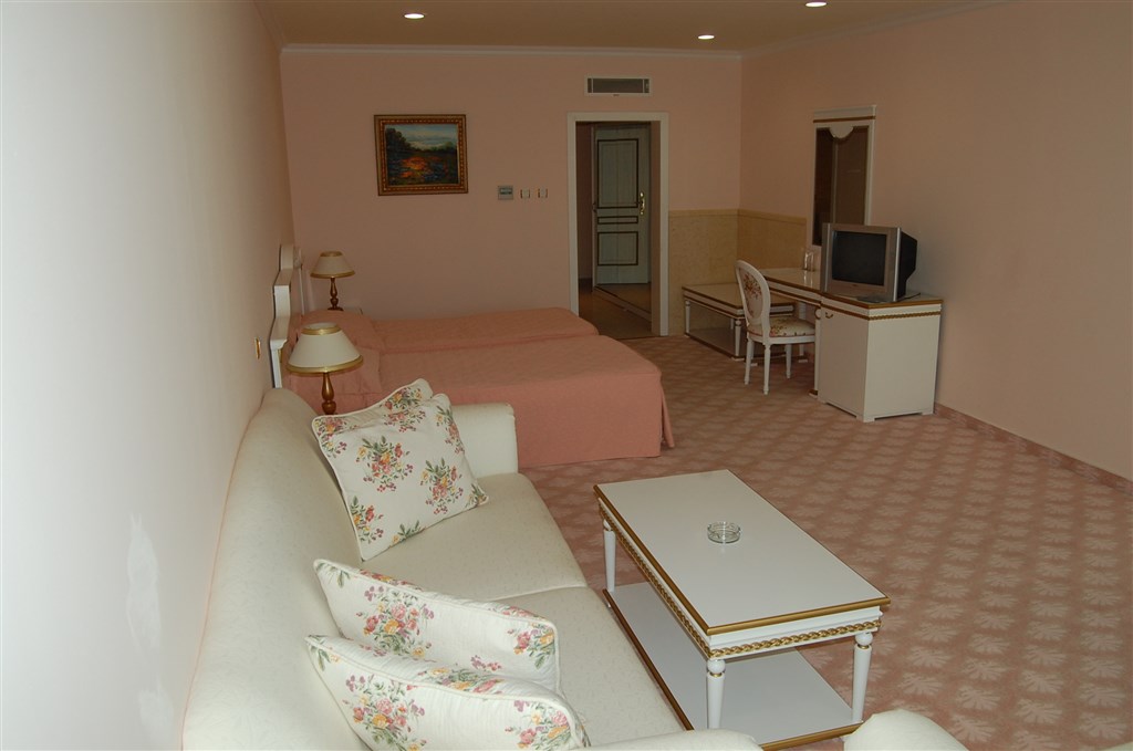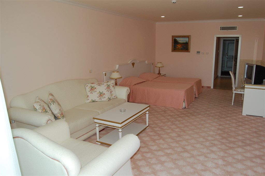 Dvoulůžkový pokoj Superior - (max, 2 dos. + 3 děti nebo 3 dos + 2 děti). Prostornější pokoj s oddělenými lůžky a rozkládací pohovkou a rozšiřitelným křeslem.