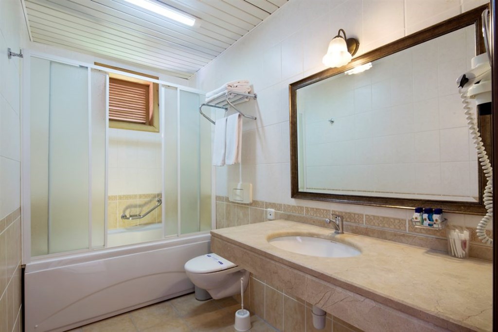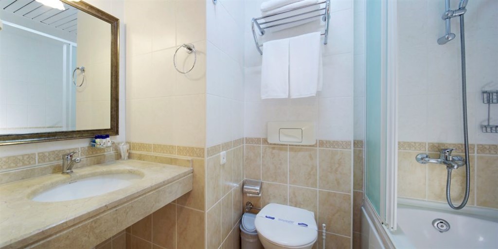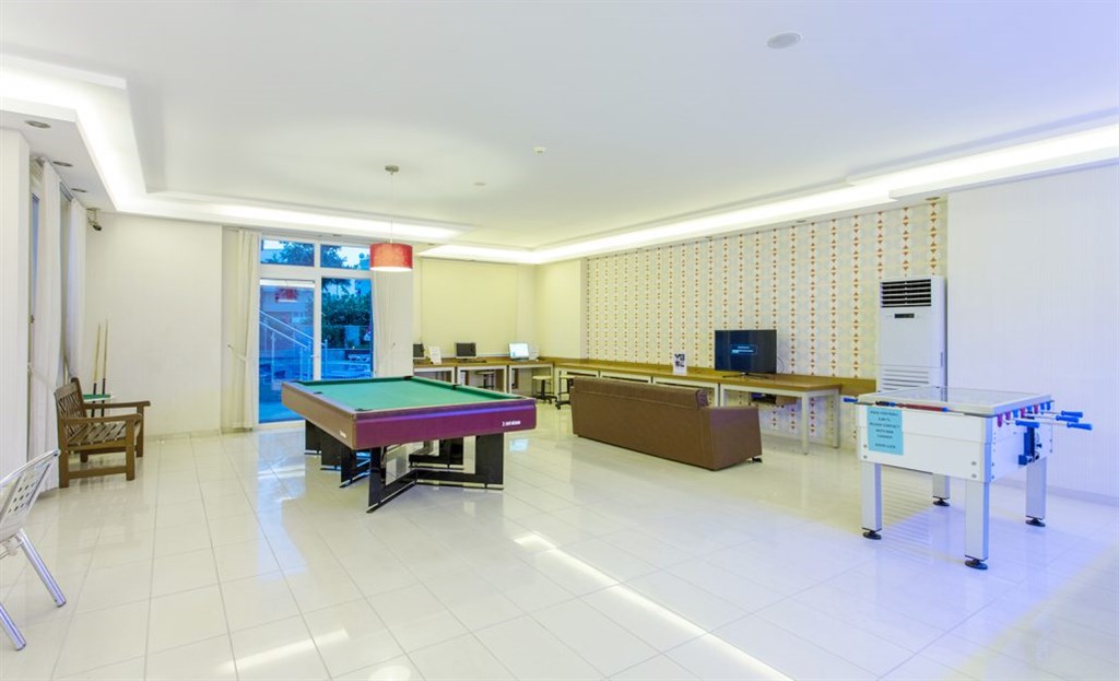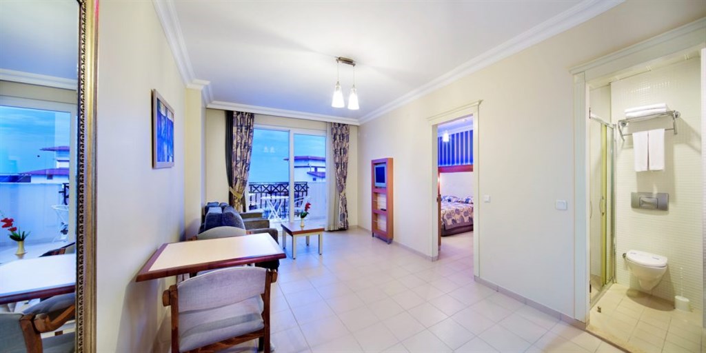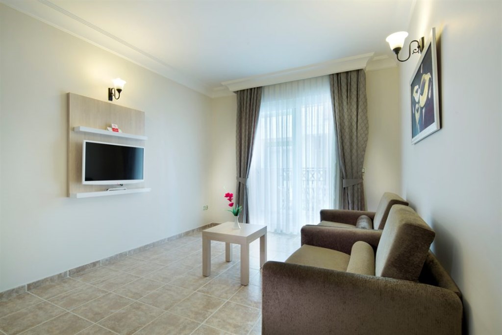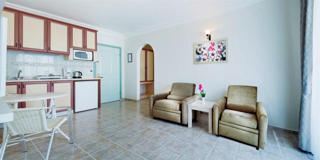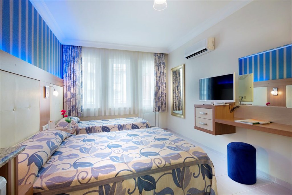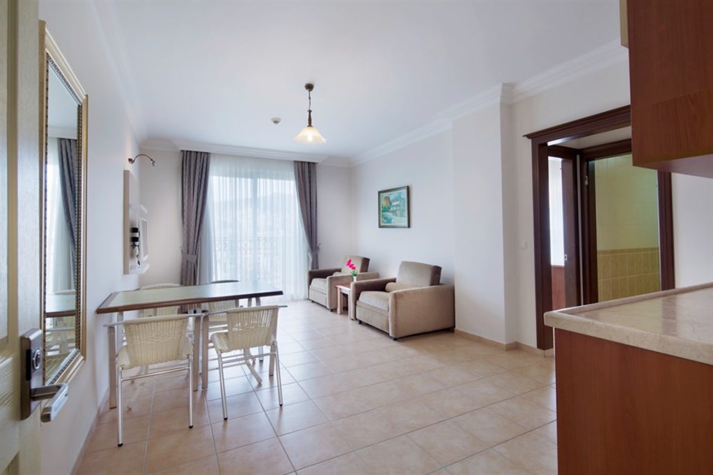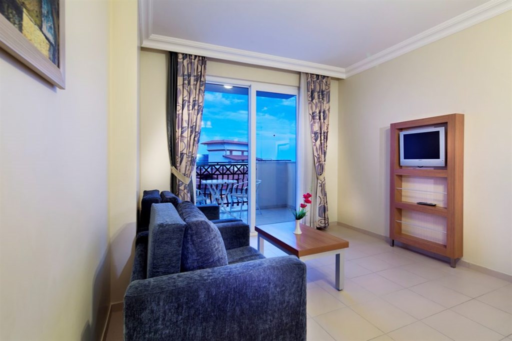 Pokoje jsou vybaveny koupelnou se sociálním zařízením, TV ( s převahou tureckých kanálů), klimatizací (za poplatek), chladničkou, kuchyňskou linkou (se základním vybavením), příslušenstvím pro přípravu kávy, trezorem (za poplatek), Wi- Fi připojením, vysoušečem vlasů, telefonem, balkonem nebo terasou.