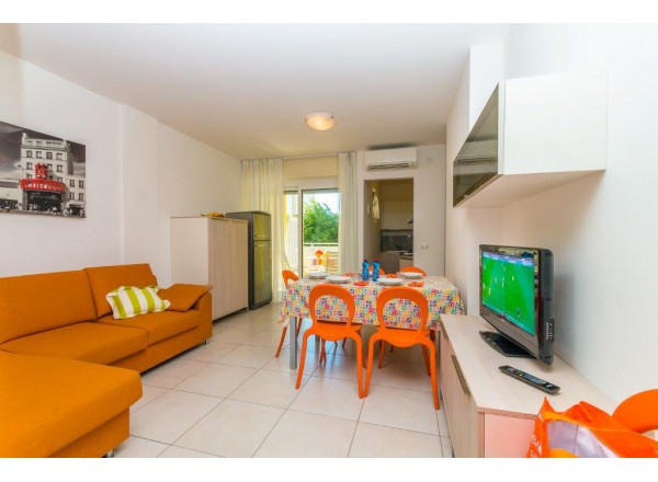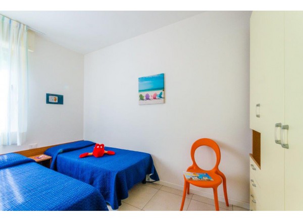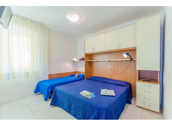 trilo pro 5 osob – obývací pokoj s gaučem a kuchyňským koutem, ložnice s manželskou postelí, ložnice 2 lůžka, pračka, balkon, za poplatek klimatizace, apartmán po rekonstrukci quadri pro 7 osob – 3 dvoulůžkové ložnice, gauč v obývací části, kuchyňský kout, sociální zařízení, balkon, mikrovlnka, za poplatek možnost klimatizace, pračka, TV.