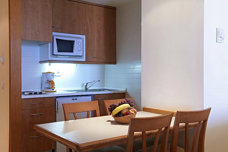 AP: koupelna/WC (vysoušeč vlasů), klimatizace, obývací pokoj s kuchyňským koutem (mikrovlnná trouba), oddělená ložnice, telefon,