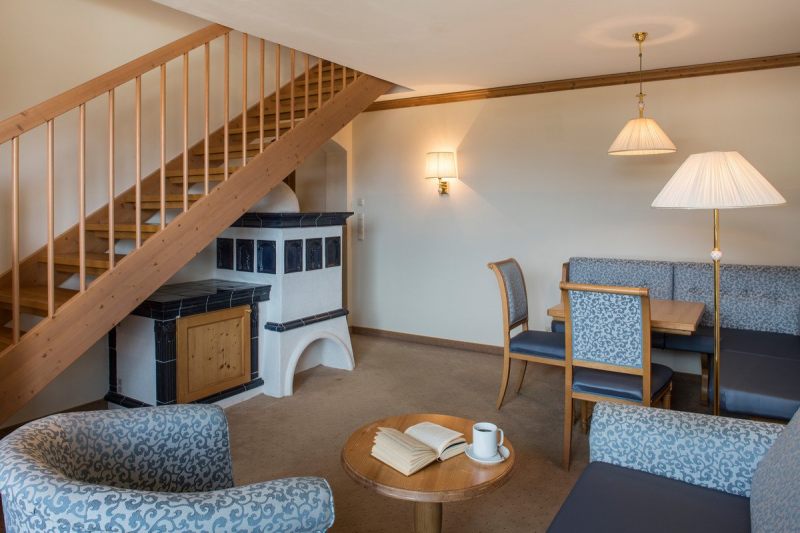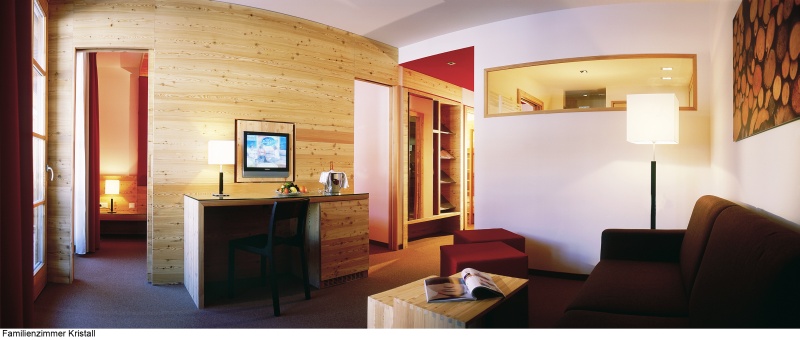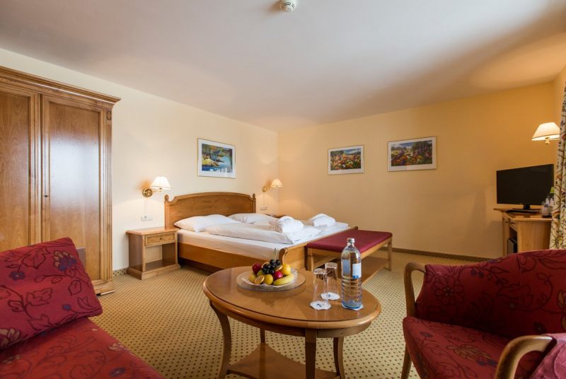 A: 2-lůžkové pokoje Deluxe (cca. 30 m2) pro 2-4 osoby – dvoulůžko a rozkládací pohovka nebo palanda (ve vedlejším budově hotelu)B: 2-lůžkové pokoje Comfort (cca. 20 m2) pro 2-3 osoby – dvoulůžko a rozkládací pohovka, min. 1 dospělíC: 2-4lůžkové Junior Suite, Comfort (cca. 30 m2) pro 2-4 osoby – oddělená obytná část a ložnice s kójemi pro děti D: 2-4lůžkové Family Suite Comfort (cca. 38 m2) pro 2-4 osoby – obytná část s dvoulůžkem pro rodiče a oddělená kóje pro děti E: 2-4lůžkový Family Maisonette (cca. 80 m2) pro 2-4 osoby – obytná část s kachlovými kamny se rozkládá ve 2 patrech, oddělená ložnice pro děti - všechny pokoje mají sprchu / WC, balkón nebo terasu, satelitní TV, telefon, některé s trezoremF: 2-4lůžkové Family suite Superior (cca. 40 m2) pro 2-5 osoby – obytná část s dvoulůžkem pro rodiče a oddělená kóje pro děti, min. 2 dosp. + 2 děti