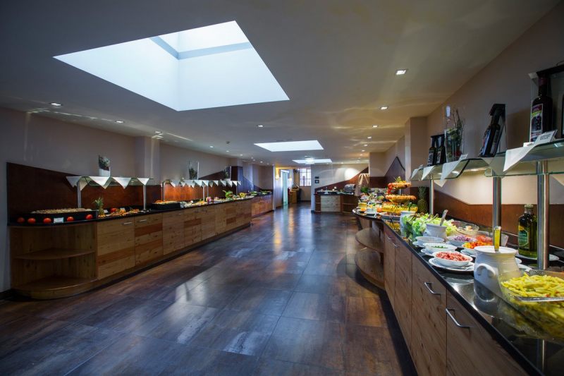 snídaňový bufet až do 11 h, polední svačinka formou bufetu (saláty, polévka, teplý předkrm), odpolední dezertový bufet, večeře menu s bohatým výběrem (předkrm, hlavní jídlo, salátový bufet), 1x týdně galavečeře, týdně tématické večery. Nealkoholické nápoje pro děti v čase hlídání ve Falky-Baru zdarma(9:00 - 20:00, čajový bar v relaxační místnosti do 10 h zdarma, 1x láhev minerální vody na pokoj při příjezdu zdarma, uvítací přípitek