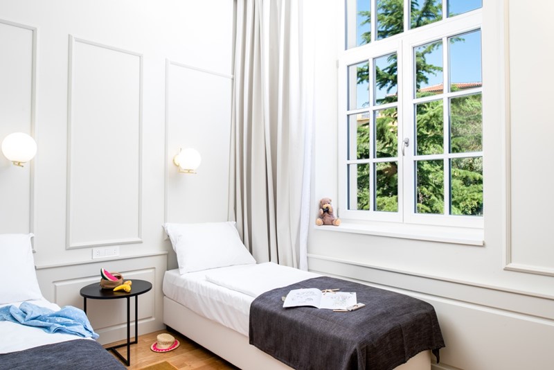 Tento luxusní hotel je zcela klimatizovaný a nabízí moderně a komfortně zařízené pokoje a to jak dvoulůžkové, tak s možností přistýlky a rodinné. Pokoje mají SAT/TV, trezor, minibar, koupelnu, vysoušeč vlasů, WI-FI, klimatizaci, některé balkon do parku nebo na mořskou stranu.