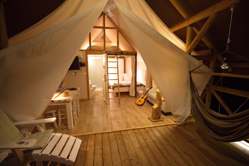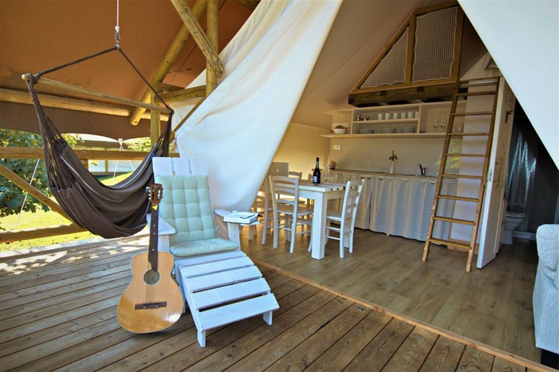 Celkem 22 glampingových vil a 11 glampingových stanů jsou elegantně seskupené s relaxačním výhledem na sousední les. Součástí glampingu je také biologický bazén (od konce června 2018).