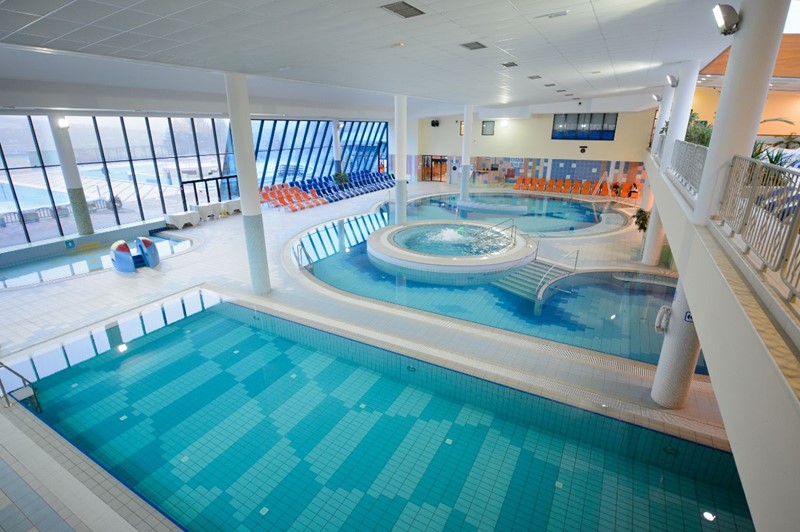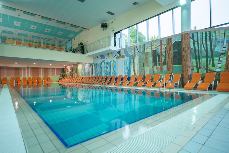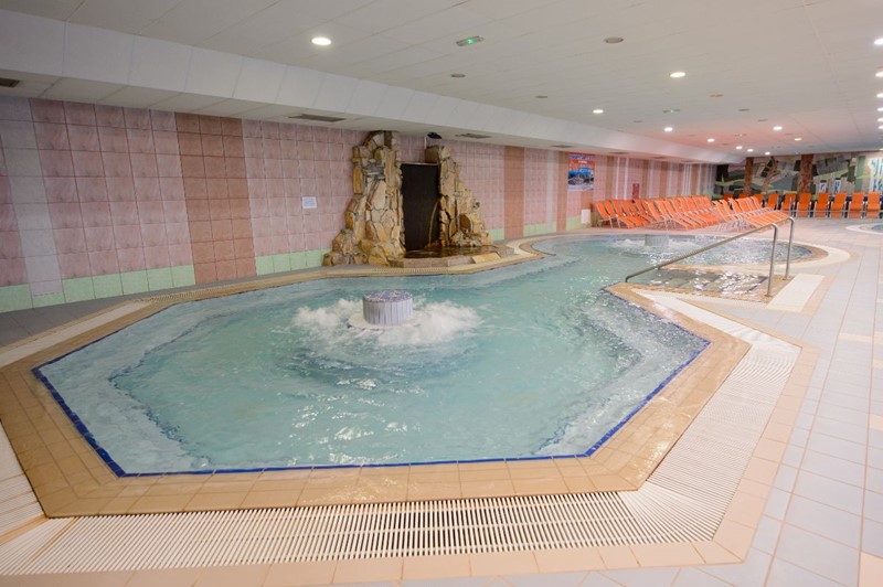 K relaxaci a rekreaci je našim hostům k dispozici 1400 m2 venkovních vodních ploch v pěti bazénech s teplotou vody mezi 30 °C a 36 °C. Můžete si užít radosti z rychlé řeky, víceúčelové bazény, masážní bazény, relaxační bazény, příjemný záliv a dětský bazén. Na opalovacích terasách, zelených travnatých plochách a v příjemném chladivém stínu stromů najdete chvilku na odpočinek. V příjemném prostředí panenské přírody, obklopeném lesem, dětským hřištěm a plochami pro pohodové ležení na trávě v teplých měsících, přímo u areálu koupaliště se nachází velká letní terasa. V letní sezóně si na terase můžete pochutnat na široké nabídce grilovaných pokrmů. Pod svou střechu pojme až 200 návštěvníků. Je vhodná pro pořádání pikniků a jiných typů setkání s kapacitou až 500 hostů. V areálu krytého bazénu je k dispozici 600 m2 vodních ploch v pěti vnitřních bazénech s teplotou vody mezi 30 °C a 36 °C.