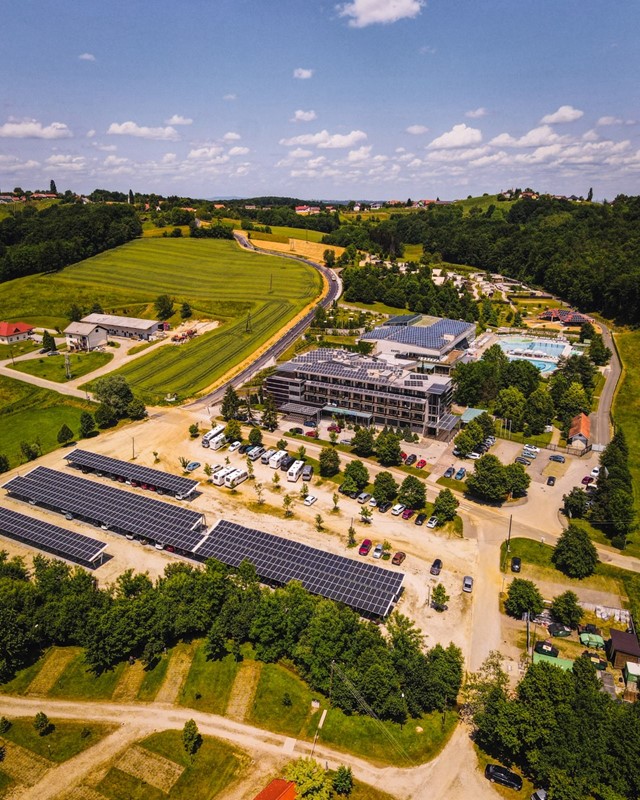 Termální park se nachází uprostřed panenské přírody, mezi lesy, pastvinami, kopci a vinicemi. 1400 m2 venkovních vodních ploch, 5 vnitřních bazénů (600 m2).
