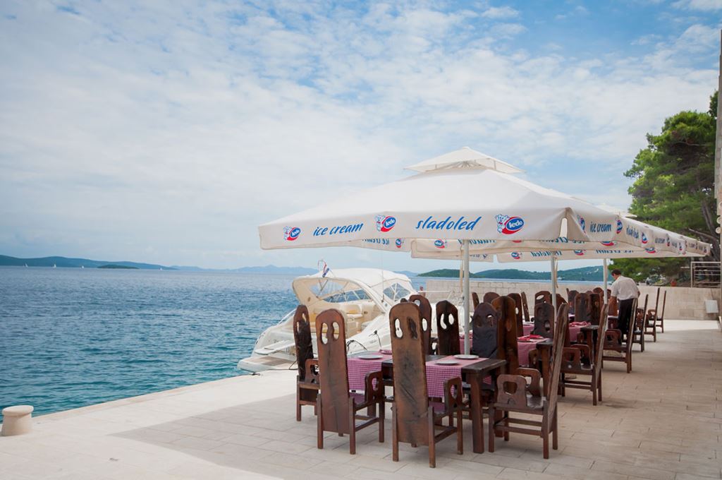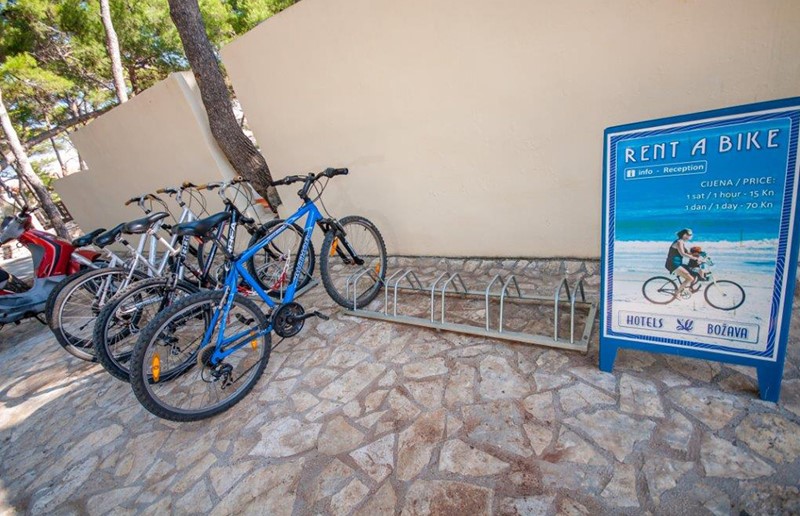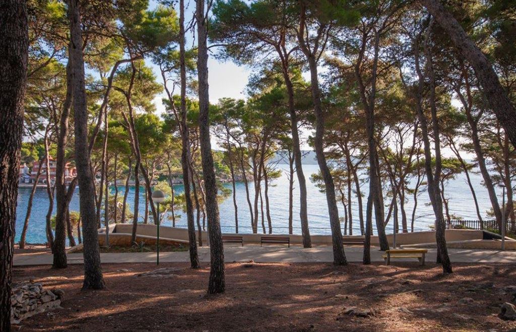 Podél hotelového komplexu i celého města jsou pláže tvořené plochými skalami s betonovými i dřevěnými platy na slunění, přímo před hotely po žebříku. Pěší promenádou borovým lesem můžete dojít k malým přírodním oblázkovým zátokám, větší oblázková pláž Opatičina je vzdálena cca 150 m od komplexu, zde si můžete užít koupání i hru na basketbalovém/volejbalovém hřišti. Ve vzdálenosti necelých 5 km se na druhé straně ostrova nachází nádherná a plně vybavená pláž Sakarun, jež je tvořena oblázky, zatímco moře má jemný bílý písek, který mu dodává zvláštní azurově modrou barvu. Moře je extrémně mělké, díky čemuž je pláž vhodná pro rodiny s malými dětmi. Zátoka Sakarun je díky své biologické rozmanitosti důležitou krajinnou oblastí Chorvatské republiky.